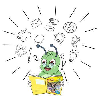 Die neugierige Raupe Maxi zeigt dir das Heft. Sie entdeckt Neues, stellt Fragen, erklärt und macht auch Spaß.